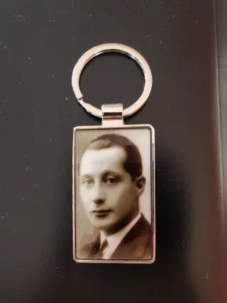 Llavero con un marco rectangular y una fotografía en blanco y negro de un hombre. - Diseño clásico. - Anilla metálica para llaves. - Llavero de José Antonio Primo de Rivera 7,50€ - Los otros dos por separados 3€ C/U - El último llavero su precio es de 8,50€ NOTA: ESTE ANUNCIO NO ESTÁ PUESTO PARA HACER NINGUNA APOLOGÍA POLÍTICA.