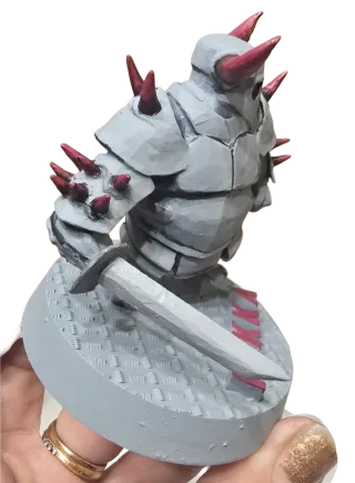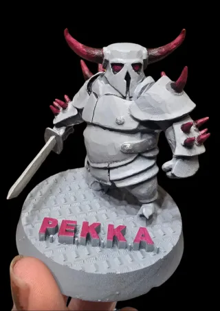 Figura coleccionable del personaje PEKKA del videojuego Clash Royale. - Diseño detallado en armadura gris. - Cuernos y púas en rosa. - Base circular con textura y nombre 'PEKKA' en relieve. - Muñeco impreso en 3D en resina de 11cm de altura. #clashroyale #pekka #p.e.k.k.a.