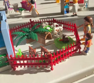 Set de Playmobil con temática de granja y animales. - Incluye figuras de personas y animales como conejos y cabras . - Accesorios como vallas rojas, plantas y elementos de la granja. - Ideal para coleccionistas y amantes de Playmobil.