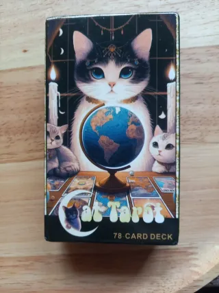 Baraja de tarot con temática de gatos, completamente nueva a estrenar. - Diseño único con ilustraciones de gatos. - Incluye 78 cartas.