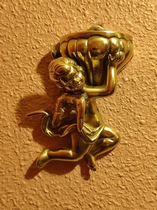 benditera de pared, también conocida como pila de agua bendita. representa un querubín o ángel que sostiene el recipiente para el agua bendita. ❌ No hago envíos