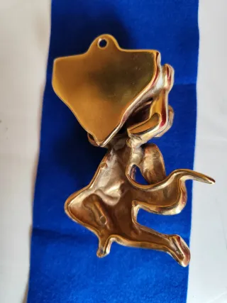 la Trinacria, el símbolo tradicional y oficial de la región de Sicilia, Italia. La Trinacria se caracteriza por: Trisquel: Una figura de tres piernas dobladas que simbolizan las tres puntas o cabos de la isla de Sicilia (Pachino, Peloro y Lilibeo). Cabeza de Medusa: En el centro se encuentra el rostro de la gorgona Medusa, a menudo representada con serpientes entrelazadas o alas, que históricamente se utilizaba como un amuleto de protección. De metal. Vintage