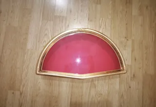 Marco abaniquera con un elegante diseño. - Marco de color dorado. - Interior forrado en terciopelo de color rojo.