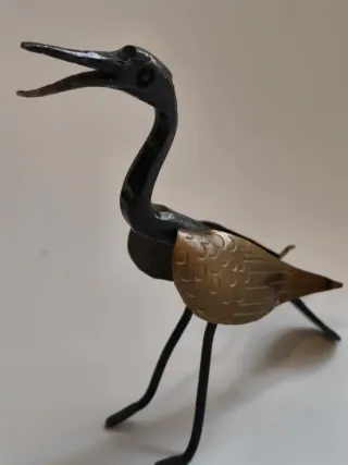 Figura decorativa de un pájaro, elaborada en bronce y con un diseño inspirado en Marruecos. - Material: Bronce. - Origen: Marruecos. - Diseño detallado.