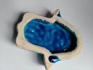 Este amuleto de la Mano de Fátima está hecho de cerámica y presenta un vibrante color azul. Falta un enganche para colgar. - Diseño tradicional de la Mano de Fátima. - Acabado esmaltado en azul. - Inscripciones en árabe.