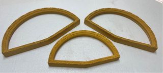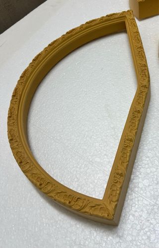 Conjunto de tres arcos decorativos con un diseño ornamental (dos más grandes y uno más pequeño). - Fabricados en resina. - Color amarillo ocre. - Diseño curvo con detalles. - Ideal para decoración. Medidas: - Grandes: 54cm(largo)x31.5cm(alto)x5.5cm(grosor) - Pequeño: 43.5cm(largo)x25cm(alto)x5cm(grosor)