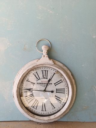 Reloj de pared con un diseño inspirado en las estaciones de tren antiguas. - Marco de estilo vintage con acabado desgastado. - Esfera con números romanos y detalles de Station Kensington London. - Ideal para añadir un toque clásico a cualquier estancia.