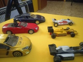 Lote de juguetes antiguos de hojalata. Ideal para coleccionistas. Incluye vagones, varios coches y camiones, y vías. Algunos juguetes muestran señales de uso acordes con su antigüedad, pero en general están en buen estado. - vagones de hojalata - Varios coches de juguete. - Camión de transporte de coches casi nuevo - Vías de tren de metal. - Estación de tren. Etc