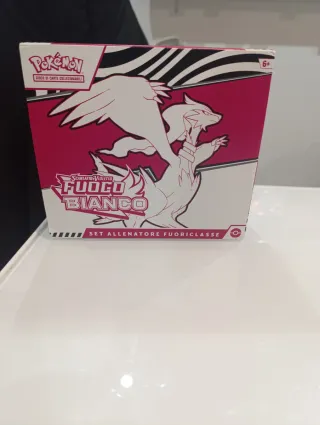 Caja de colección de cartas Pokémon, edición Scarlet Violetto Fuoco Bianco. - Set de Entrenador de Clase Superior. - Incluye arte de Pokémon. - Apto para mayores de 6 años. - Idioma : Italiano Pokémon: Estuche de Entrenamiento de élite Escarlata y púrpura – Llama Blanca – Reshiram (1 Tarjeta Promocional Totalmente ilustrada de Boreas, 9 Boosters y Accesorios de Juego Premium)