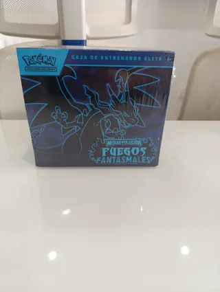 Pokémon: Caja de Entrenador Élite de Megaevolución-Fuegos Fantasmales de JCC Pokémon (1 Carta de promoción con ilustración expandida, 9 Sobres de Mejora y Accesorios prémium Caja de entrenador élite de Pokémon, edición Fuegos Fantasmales. Caja algo abierta por un lado, pero sellado. Nuevo - Diseño con arte de Megaevolución. - Incluye contenido de Fuegos Fantasmales.