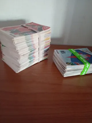 Colección de cartas de fútbol Adrenalyn XL. Ideal para coleccionistas y aficionados al fútbol el taco grande son normales y el taco pequeño especiales. - Variedad de cartas disponibles. - Perfectas para intercambiar y jugar.