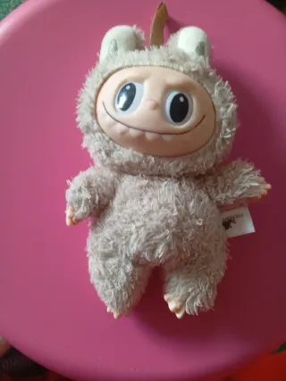 Peluche del personaje Labubu. - Diseño de monstruo peludo. - Cara con ojos grandes y sonrisa. - Orejas y manos de color claro.