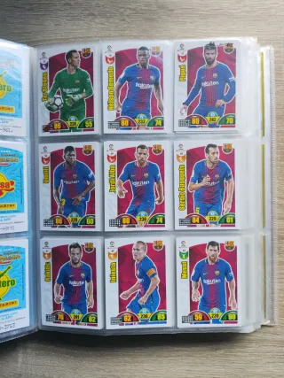 Álbum de cromos Panini Adrenalyn XL de LaLiga Santander de la temporada 2017-18 94% completo con 548 cromos. Faltan 16 básicos 1 ídolo 1 superdraft 2 supercracks y parte de la actualización. No contiene todas las ediciones limitadas. Un 4% del álbum con cartas desgastadas como el Cristiano balón de oro (doblado) barça, Messi, Cristiano, autografo original,balón de oro, topps, autografo premium, firma original, autografo Adrenalyn,firma premium,champions, liga,momentum online, colección,supercrack, este, Adrenalyn,Yamal bis rookie, 71 bis, megacracks, 108 BIS -Se valoran ofertas razonables.
