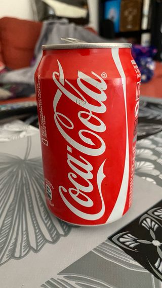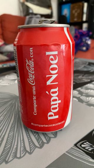 Lata de Coca-Cola de colección con diseño de nombre Papá Noel. Abierta sin líquido. Primeras latas con nombre. - Edición especial y exclusiva - Comparte una Coca-Cola con Papá Noel.