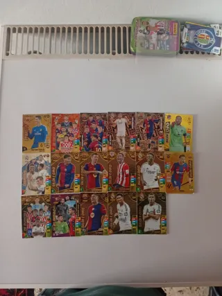 Colección de cartas de fútbol de la marca Panini. - Incluye cartas de jugadores. - Algunas cartas son de edición especial Balón de Oro y Champions. - lo de arriba NO SE VENDE DIME LA CARTA QUE QUIERES Y TE DIGO PRECIO.