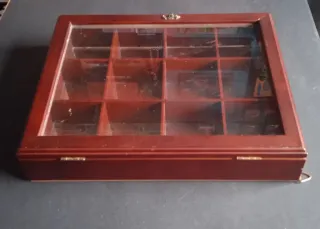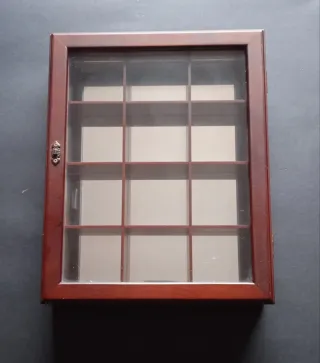 Vitrina madera 12 huecos con cristal y espejo,cierre magnético.En perfecto estado.Medidas:30cm x 24cm x 6cm.Para colecciones sin polvo de playmobil,coches 1:45,kinder.... 🫱🏻🫲🏼Trato en mano. 📦Envíos:Wallapop y Pay Pal.
