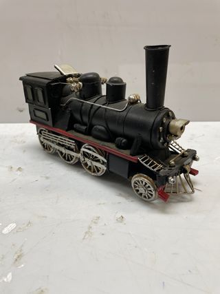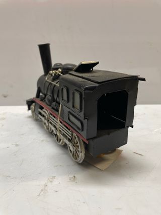 Locomotora decorativa fabricada en metal. - Diseño detallado de tren clásico. - Acabado en color negro con detalles rojos y plateados.