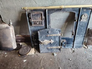 Cocina de leña antigua con calderín de agua., le falta parte interna del horno - Diseño clásico y robusto. - Ideal para coleccionistas o decoraciones rústicas.