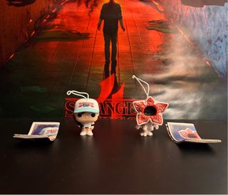Colección de figuras Funko Pop de Stranger Things, provenientes de Kinder Joy. - Incluye 4 figuras. - Personajes de Stranger Things.