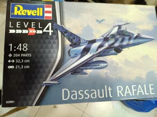 Maqueta de avión Dassault Rafale na escala 1:48 da Revell. - Nível de dificuldade 4 de 5. - Inclui 204 peças. - Comprimento: 32,3 cm. - Envergadura: 21,3 cm. - Referência: 03901.