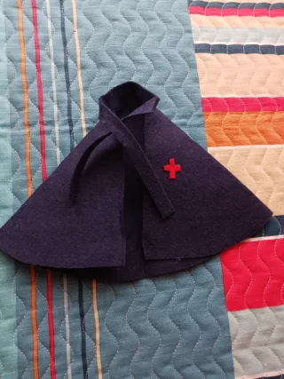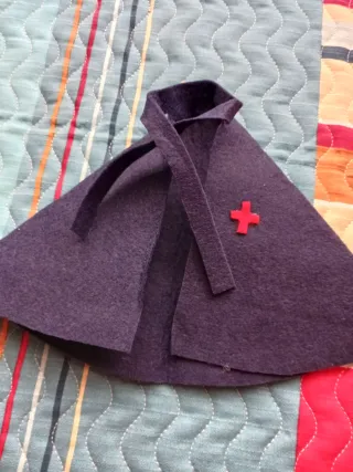 Capa de fieltro morado para muñeca Nancy, con el distintivo de enfermera.replica - Capa de fieltro. - Color morado. - Incluye cruz roja de enfermera.