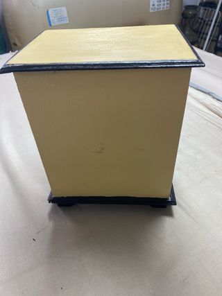 Pequeña cajonera decorativa con un acabado en color amarillo y detalles en negro. - Tres cajones con tiradores redondos. - Diseño compacto.