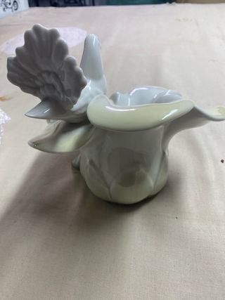 Preciosa estatua de porcelana con una delicada paloma posada sobre un pétalo. - Diseño elegante y detallado. - Acabado brillante.