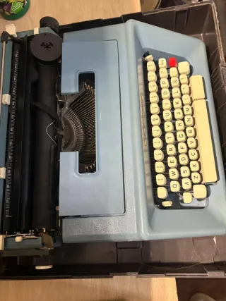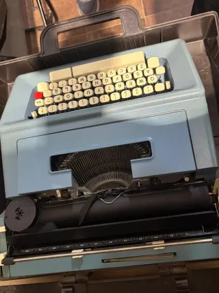 Se venden dos máquinas de escribir Olivetti, modelos Lettera 10 y Studio 46. Una de color azul claro y la otra beis,vienen en sus maletines de transporte. - Máquina de escribir Olivetti Lettera 10. - Máquina de escribir Olivetti Studio 46. - Color azul claro,color beis - Incluyen maletines de transporte.