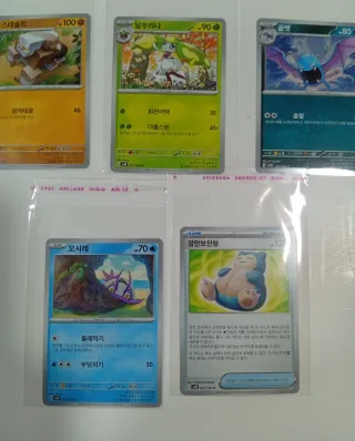 Lote de cartas Pokémon de la edición coreana.lote 5 cartas Pokémon Corea todas juntas or solo 2'50€ por compras de tres anuncios del perfil 2€ de descuento - Carta 스태솔트 (Stealth Salt) con 80 de PS. - Carta 달무리나 (Celestina) con 90 de PS. - Carta 골뱃 (Golbat) con 80 de PS. - Carta 꼬시레 (Wimpod) con 70 de PS. - Carta 잠만보인형 (Snorlax Doll) con 120 de PS.las 5 por 2'50€ no se venden por separado solo juntas
