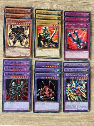 Lote de cartas de Yu-Gi-Oh! para coleccionistas y jugadores. - Exodius the Ultimate Forbidden Lord - Celtic Guardian - Kunai with Chain - B. Skull Dragon - Thousand Dragon - XYZ-Dragon Cannon X3 of each card