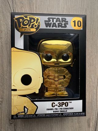 Pin metálico de C-3PO de Star Wars, número 10 de la colección Pop! Pin. - Diseño dorado brillante. - Presentado en su caja original. Sin usar