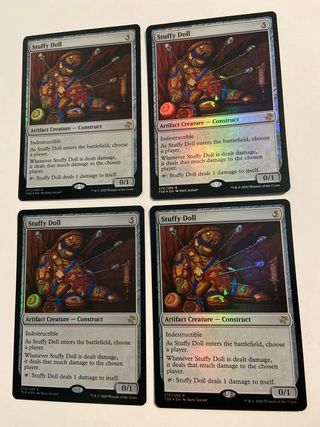Se vende un set de 4 cartas de Stuffy Doll en versión foil para el juego de cartas Magic: The Gathering. - Cartas foil. - Set de 4 unidades.