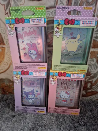 ✅️ Colección de 4 latas de edición limitada de Hello Kitty y Amigos. 🎁 Cada lata incluye 1 sobre de cartas y 1 carta de edición limitada exclusiva. 🎖 Diseños de My Melody, Pompompurin, Kuromi y Hello Kitty.