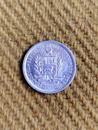 Moneda de 1 bolívar de plata del año 1965. -No hago envíos entrega en mano - Diseño con perfil de Simón Bolívar. - Inscripción BOLIVAR y LIBERTADOR.