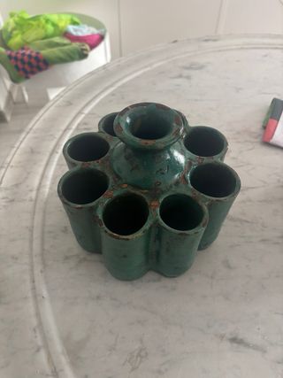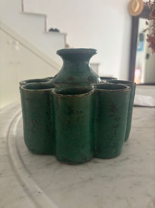 Original tintero de estilo marroquí del s. XVII con un acabado verde esmaltado. Presenta un diseño con múltiples compartimentos. Adquirido en Fez. - Color verde. - Diseño con varios huecos.