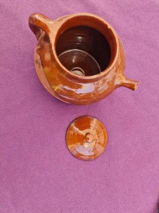 Olla de barro vintage con tapa