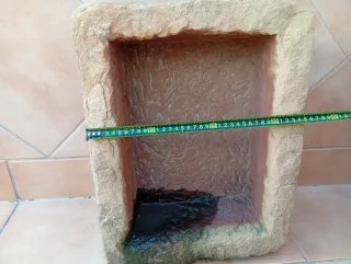 Pila antigua de piedra con un diseño rústico y natural. - Material: Piedra. - Aspecto: Textura rugosa y bordes irregulares. NO Sé realizará envío de este artículo pesa aproximadamente entre 25 kg y 30kg.