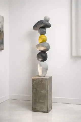 Escultura decorativa hecha de cemento y hormigón. - Diseño moderno y minimalista. - Ideal para interiores o exteriores.