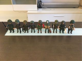 Lote de 9 figuras de Playmobil representando soldados de la Segunda Guerra Mundial. - Figuras detalladas con uniformes y cascos. - Incluye accesorios como armas. 9€ unidad