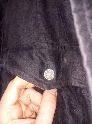 Antiguo mono holandés usado en época de la Segunda Guerra mundial wwii según he podido investigar. Es de la marca "de Nierse". No tiene talla. Pero yo con 1'73 y 70 kg me va bien, aunque ls mangas un poco cortas. Tiene cinturón. le faltan unos botones para cerrar el pecho. Los botones bonitos según encontré en internet pertenecieron a esa época y se usaban en temática militar. Este mono en concreto color negro no lo encontré, encontré otros de dicha época en verde y gris y generalmente hacían referencia a mecánicos militares o de la armada. Desconozco si se usó en el Ejército del aire, armada real holandesa, por tropas, o bomberos