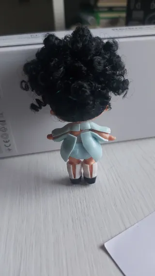 Muñeca LOL con pelo rizado y traje azul