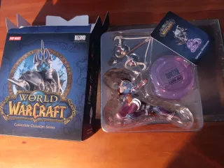Figura coleccionable de Sylvanas Windrunner de World of Warcraft. - Fabricada por Pop Mart. - Parte de la serie de personajes coleccionables. - Incluye base de exhibición.