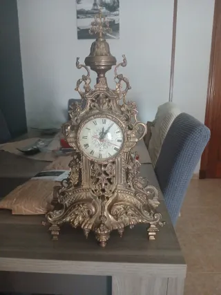 Elegante reloj de sobremesa con un diseño muy antiguo y ornamentado. Su acabado en bronce le confiere un aspecto clásico y distinguido.funciona perfectamente diseño barroco. Primeros relojes de de la casa toda una reliquia. - Material: Bronce. - Mecanismo: Quartz.