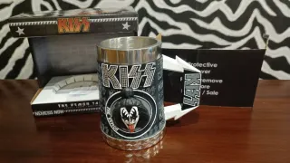 Jarra coleccionable de la banda KISS, modelo The Demon Tankard. - Diseño inspirado en el personaje The Demon. - Detalles en relieve y con pedrería. - Asa con el logo de KISS. - Caja original. - Nemesis Now. Entrega en mano. Zona Valdemoro.