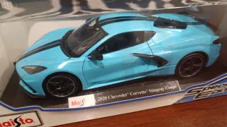 Réplica detallada del Chevrolet Corvette Stingray Coupe de 2020 de Maisto. - Modelo a escala 1:18. - Color azul brillante con franjas negras. - Edición especial. - Presentado en su caja original. Entrega en mano. Zona Valdemoro.