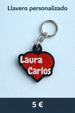 Llavero con forma de corazón personalizado. - Diseño de llavero con forma de corazón con nombres totalmente personalizado. Se pueden elegir los colores. - Incluye anilla para llaves.