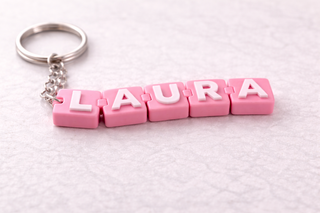 Llavero con nombre personalizado, hecho con piezas articuladas que le dan movilidad y flexibilidad, perfecto para llaves, mochilas o bolsos. Nombre totalmente personalizable Diseño articulado Letras en relieve Ligero pero resistente Anilla metálica incluida Fabricado con material plástico duradero (impresión 3D). Pregunta sin compromiso y dime el nombre que quieres. Posibilidad de elegir colores