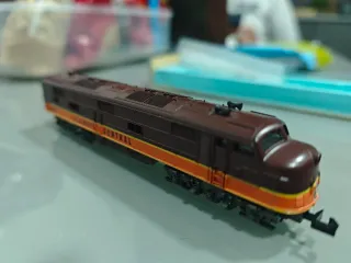 Locomotora de colección Atlas en escala N, representando a la Illinois Central. Rueda muy bien, el motor es austriaco y va de mimo. Tubo un golpe y se rompió el aparta abras, que se envía en una bolsita para si alguien lo quiere arreglar. Además se tuvo que reforzar la caja del enganche delantero, y un cardan se salió de su sitio, algún manitas lo podría volver a poner bien sin problemas. El motor es muy bueno. Ref 4072 de Atlas, fabricado en Austria. - Modelo detallado. - Color marrón y naranja característico.