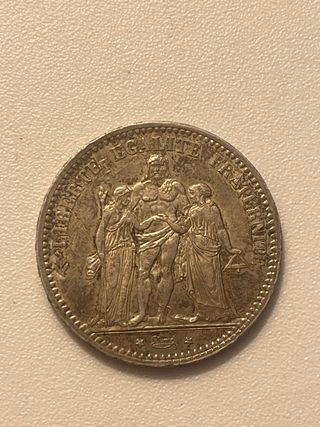 Moneda plata 5 Francos Francia 1875