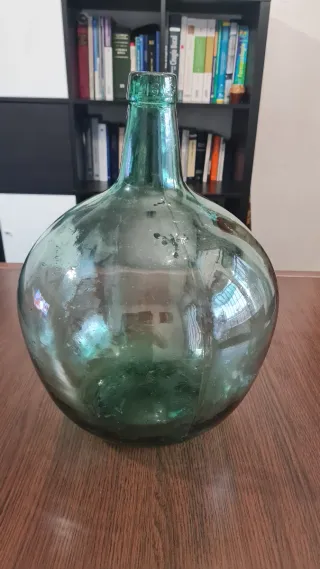 Damajuana vidrio verde soplado vintage